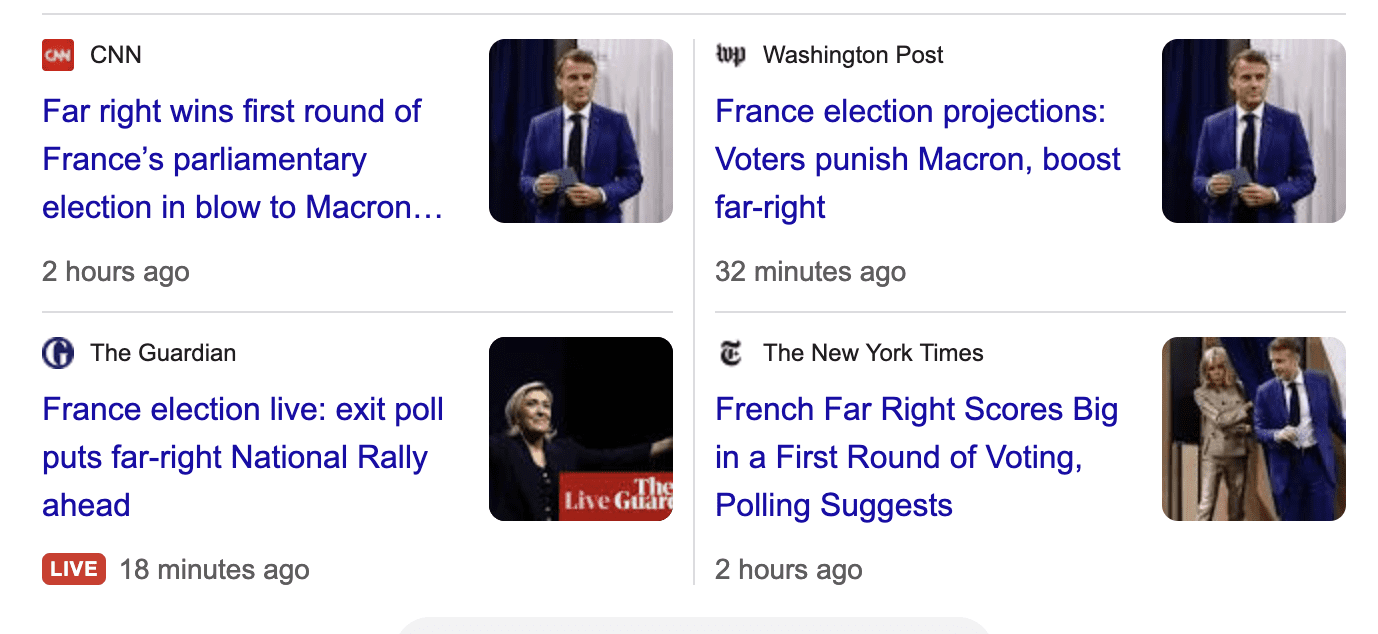 После сокрушительной победы крайне правых на выборах в Европейский парламент в начале этого месяца Макрон назначил досрочное голосование во Франции, поскольку опасался, что в противном случае результаты приведут к параличу законодательного органа.