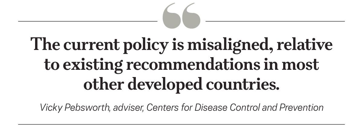 «Нынешняя политика не соответствует рекомендациям, существующим в большинстве других развитых стран», — сказал Пебсворт.