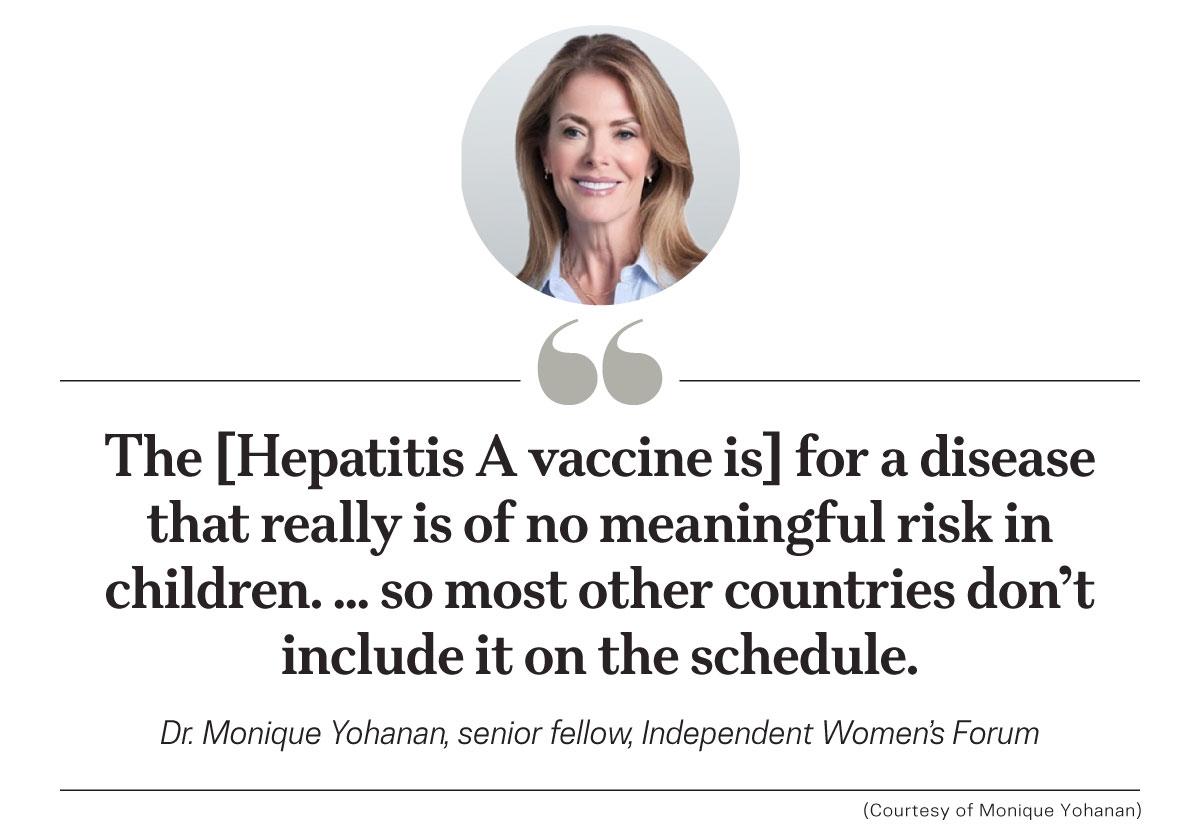 Консультанты указали, в частности, на то, что в других странах, таких как Дания, органы здравоохранения не рекомендуют так называемую прививку от гепатита В младенцам, если только у матери не будет подтвержден гепатит В — заболевание, которое может вызывать инфекции печени и серьезные осложнения.