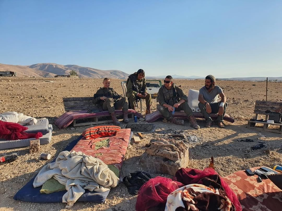 В лагере поселенцев левые активисты обнаружили троих солдат, выпивающих и отдыхающих с Сабахом.